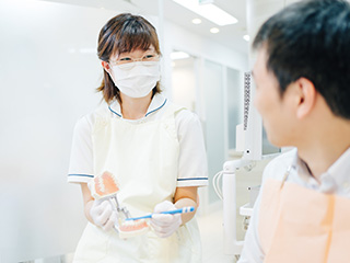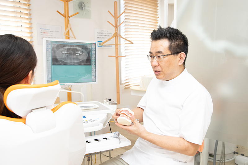 「歯が痛い」「詰め物が取れた」「ものが噛めない」といった症状への応急処置が終わったら、当院では続いて、患者様のお口の中全体を検診。治療が必要な部位が見つかったら、カウンセラーが患者様にご説明します。